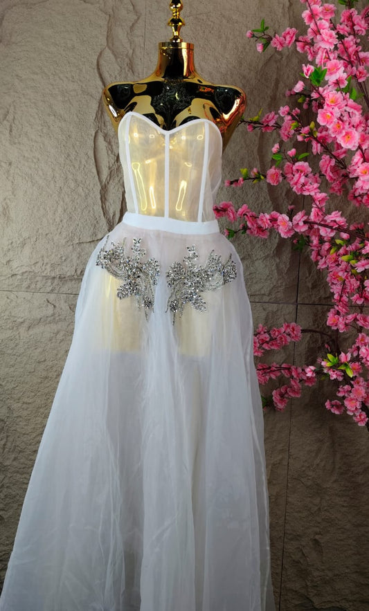 VESTIDO DE TUL Y SACO CORTO CON APPS BLANCO