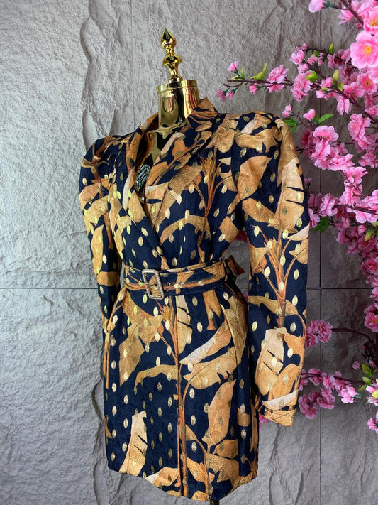 VESTIDO FORMAL CRUZADO DORADO/NEGRO