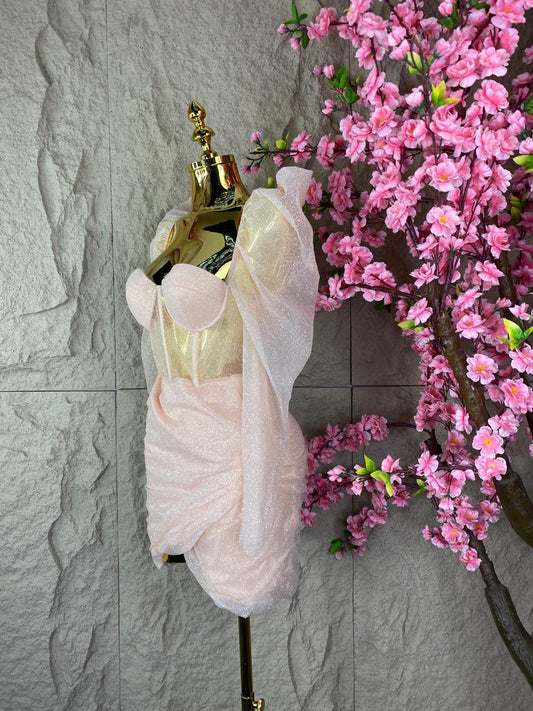 VESTIDO CORTO DRAPEADO A LOS LADOS ROSA