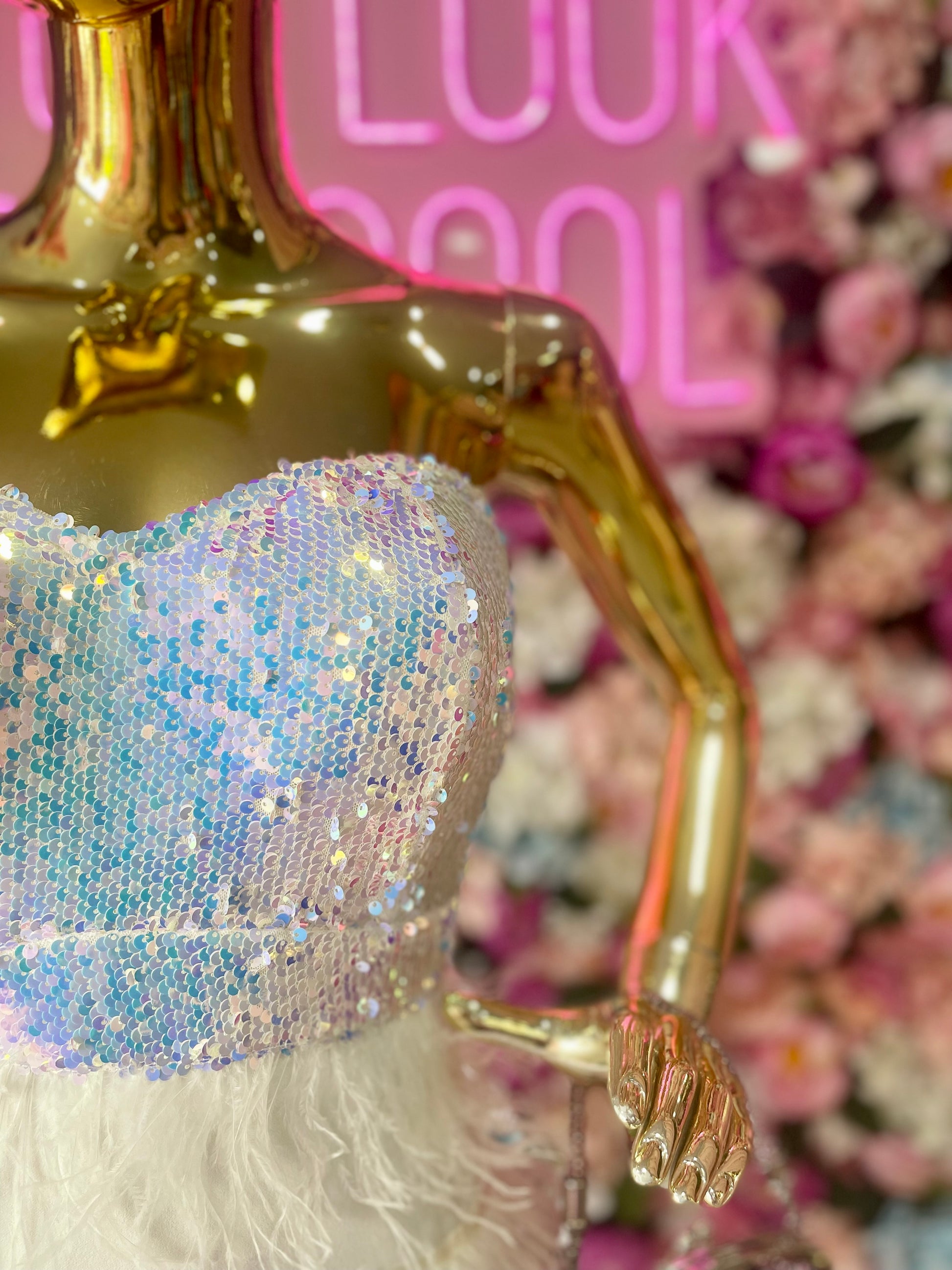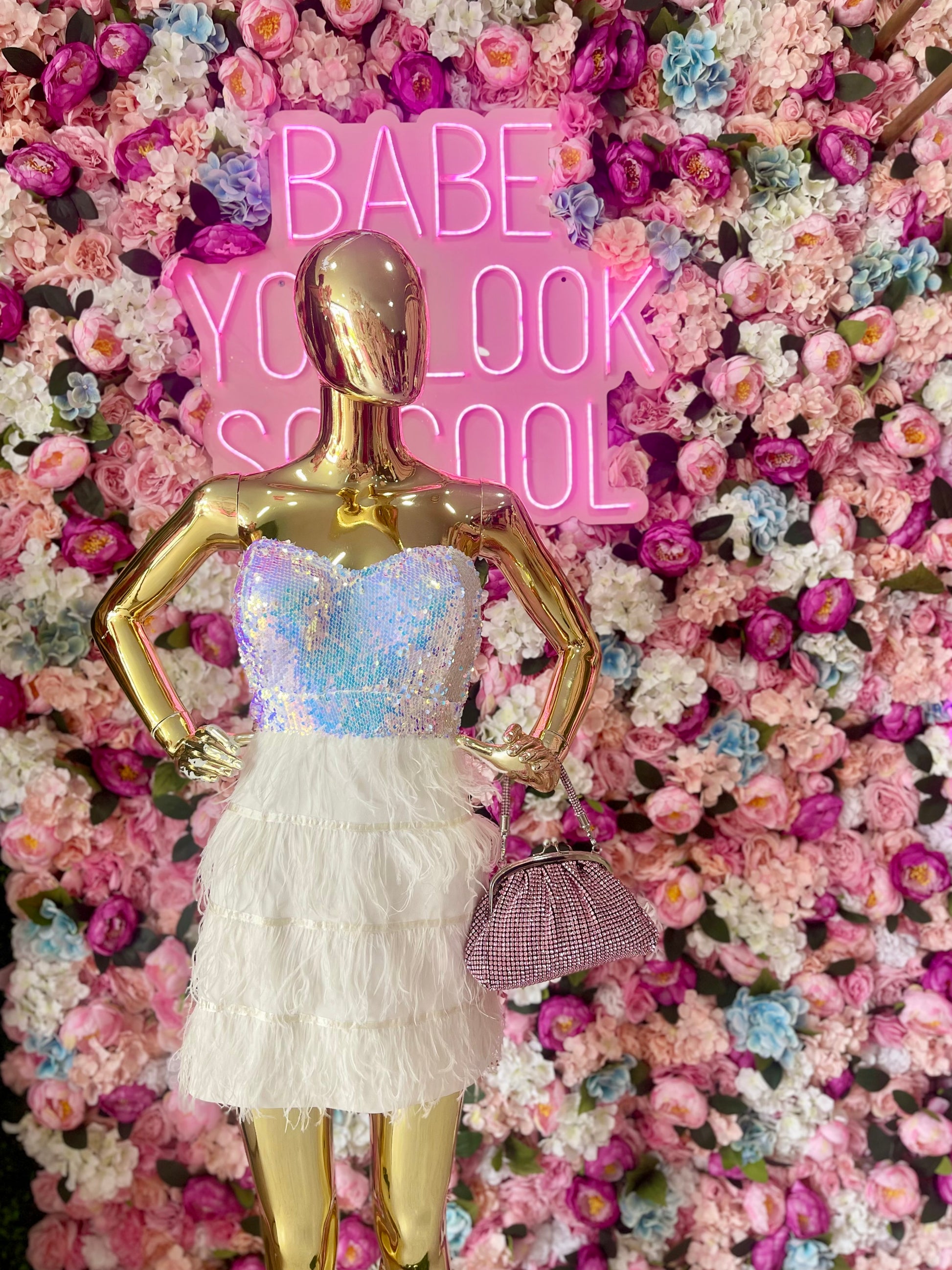 VESTIDO DE PLUMAS Y LENTEJUELA