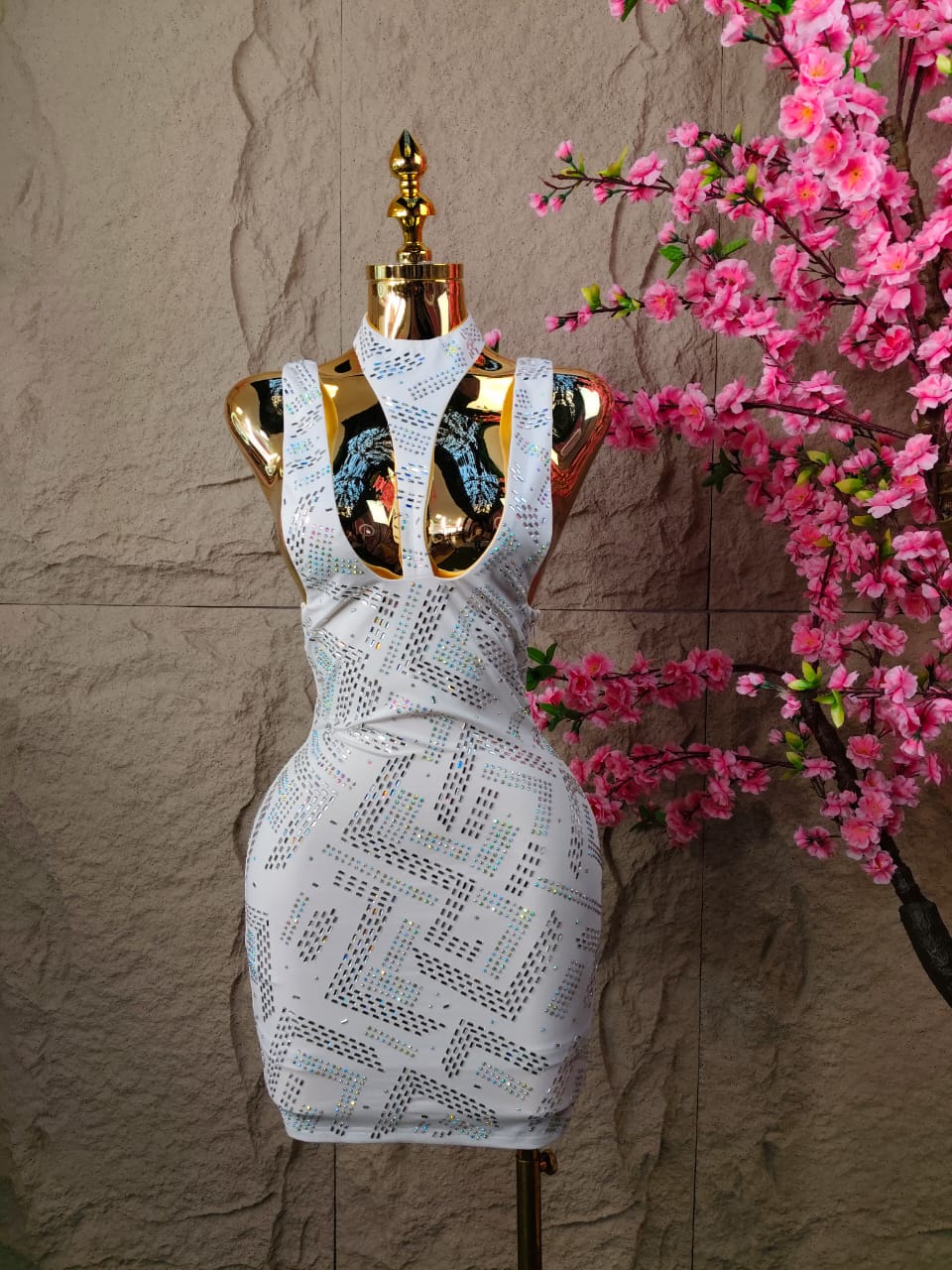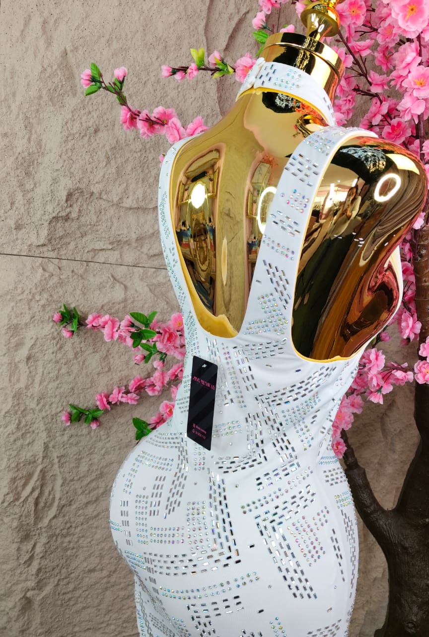 VESTIDO CORTO HOLTER CON CRISTALES BLANCO